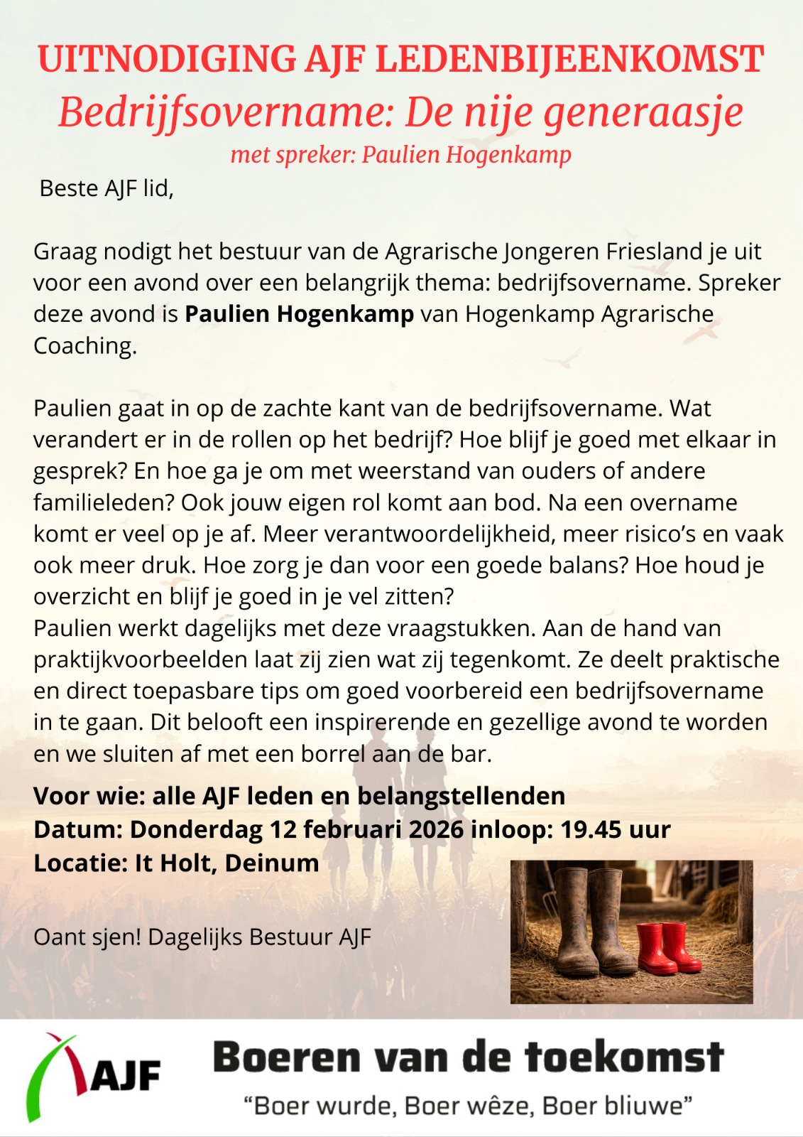 • Agrarische Jongeren Friesland – in gesprek over de rol van ouders bij bedrijfsovername